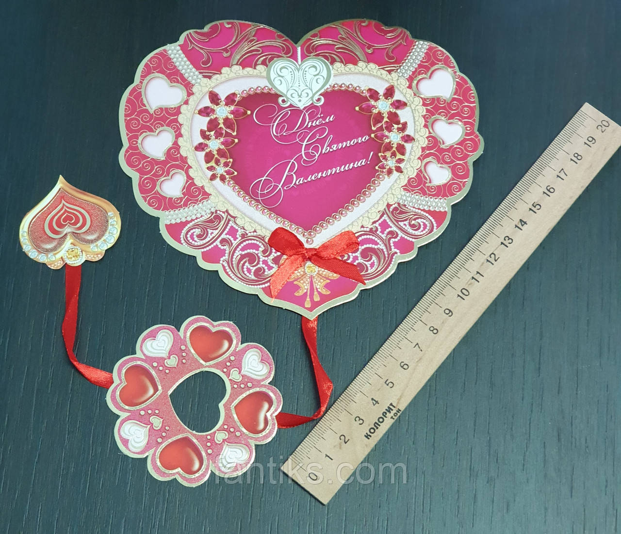 Листівка з підвіскою "З днем Святого Валентина!" двостороння з елементами золотої накатки (див. фото товару)