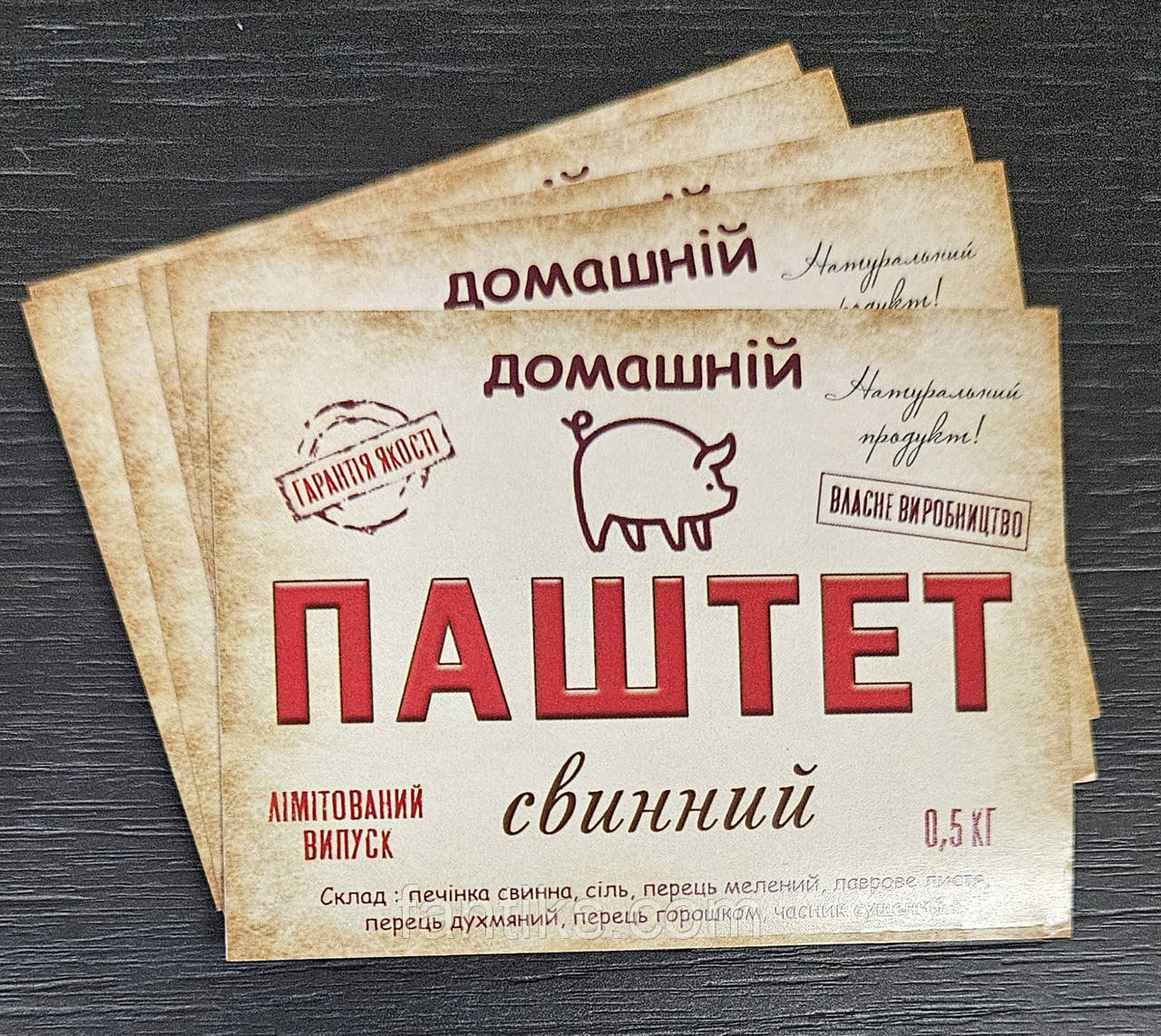 Наклейки на паштет 6 х 8 см - ПІД ЗАМОВЛЕННЯ!!! Передплата 100%!Мінімальний тираж 20 штуки одного виду!